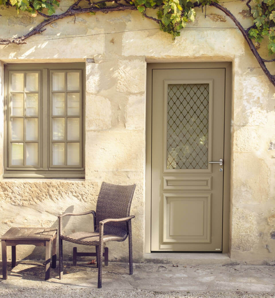 Als u wilt vertrouwen op pure stabiliteit, lichtheid en inbraakbeveiliging, kunt u ook een aluminium voordeur ontwerpen in een landhuisstijl. Moderne voordeuren van aluminium kunnen worden aangepast aan de traditionele uitstraling, net als een houten voordeur in verschillende kleuren en decors.